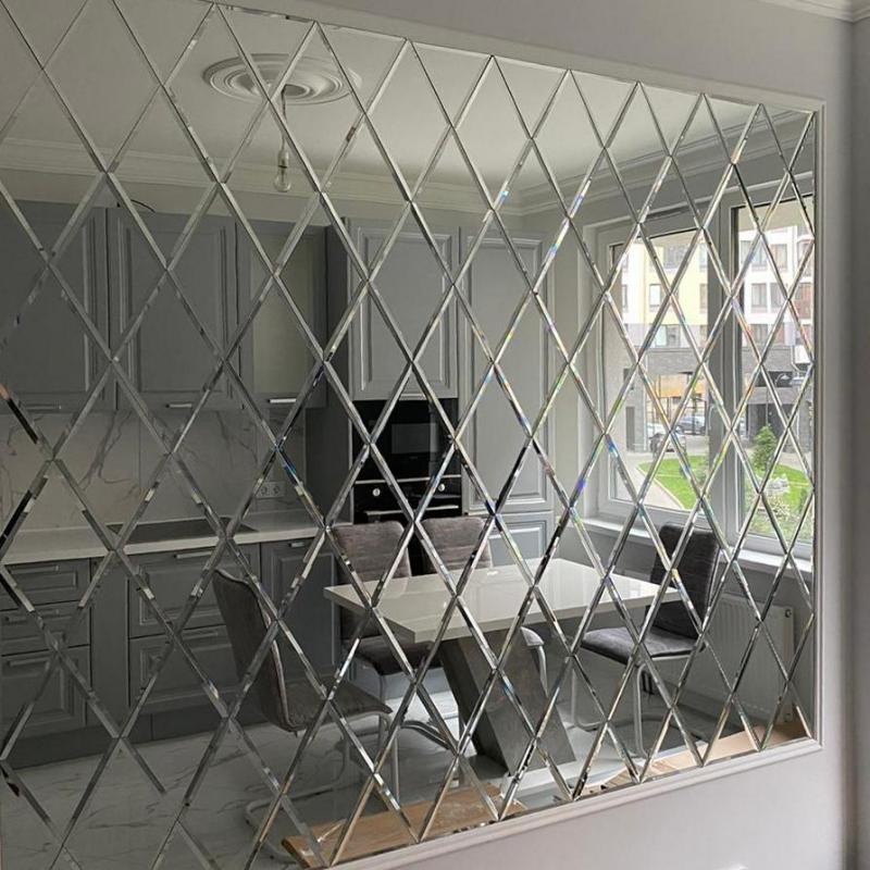 Использована зеркальная плитка "вытянутый ромб" с фацетом.